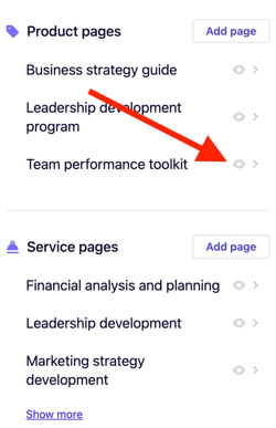 Note: If you don’t see the page listed, click Show more to expand the list.
