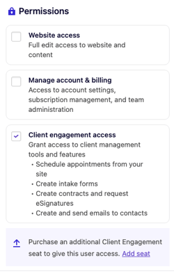 Client engagement access requires an active Client Engagement seat. |
