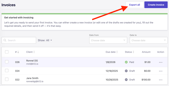 2. To download all invoices to a CSV file, click Export all.