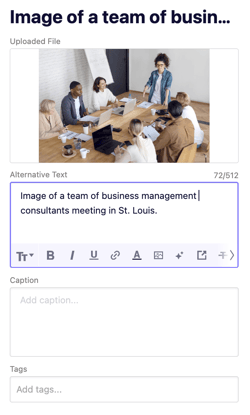 4. You can then add your desired description to the Alternative Text field. Add an image tag or caption if needed.