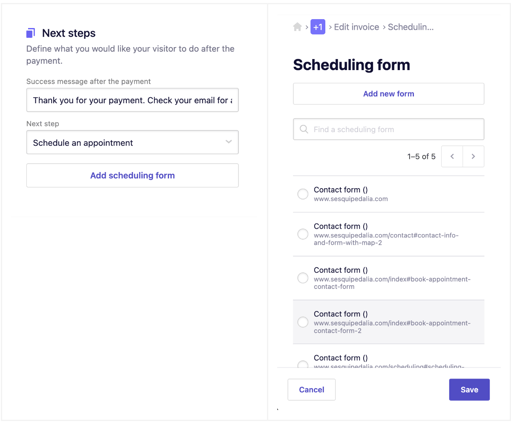 4. For this example, we will select Schedule an appointment since this is a common next step after a client completes a payment.