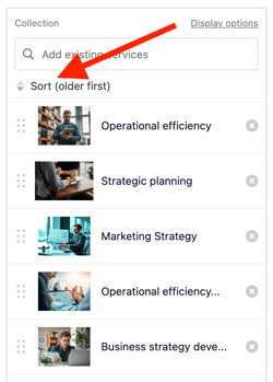 You can automatically control the order in which collection items appear using built-in sorting options. This helps keep your content organized and ensures new items appear in the right place without manual reordering.