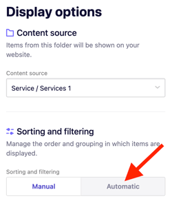 Use automatic sorting when you want more control over how collection items are ordered or when displaying a limited preview of items on another page.
