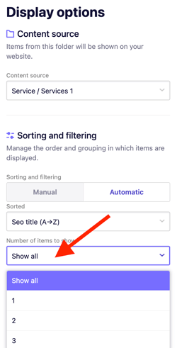 6. Under Number of items to show, select how many items should display.