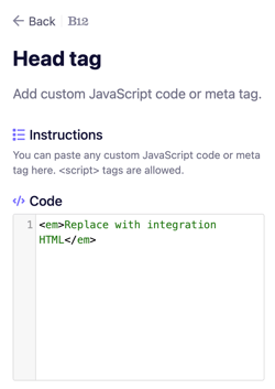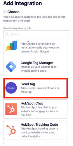 3. Choose Head tag as the integration type.