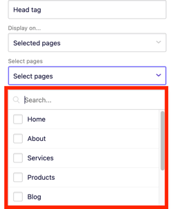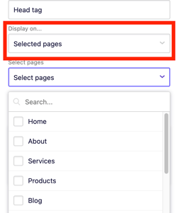 6. Under Display on... choose Selected pages.