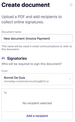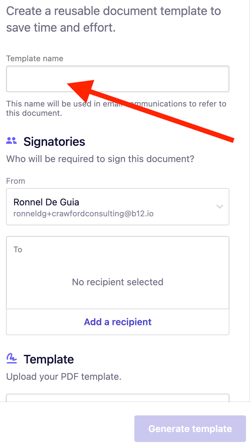 3. Edit the document name. The name will appear in the email your client receives, so you can personalize it by including the client’s name.
