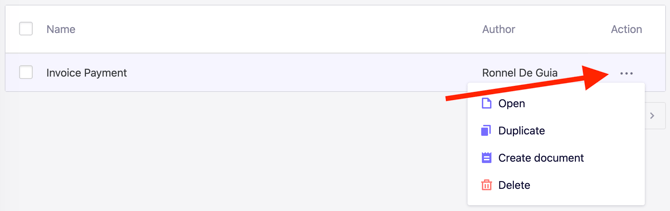 2. Click the meatball button ⋯ next to your template, then select Create document.