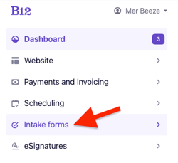 3. In the left sidebar, select . Intake forms