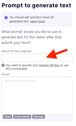 2. If this is the first AI form you’ve created, you’ll need to paste in your OpenAI API key.