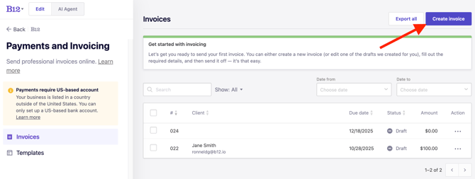 1. In the left sidebar menu, go to . Payments and Invoicing