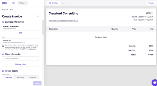 Note: You do not need to add line items. The client will select services when submitting the form.