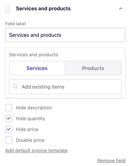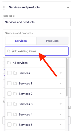7. Add the services or products you want the customer to purchase by clicking Add existing items and searching for the services.