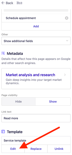 A template page is an auto-generated page that has set sections. When you edit a section within a template page, those changes will be reflected on every page using that template. Service and product pages utilize a template style page.