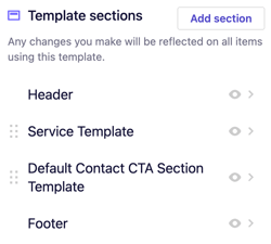 4. From here, you’ll see the template sections. You can add a new section, rearrange, or hide existing ones.