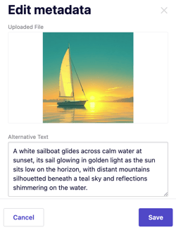 3. Enhance accessibility and SEO by adding Alternative (Alt) text, which describes the image for screen readers, then click Save.