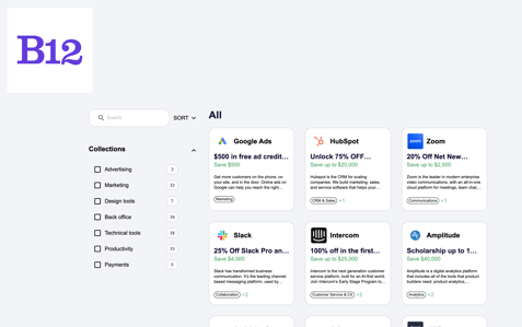 Our partnership program connects B12 customers with industry-leading companies, offering a range of services to complement and enhance your business operations. By collaborating with these partners, we aim to provide you with tools and resources that align with your business needs—all at significant discounts exclusive to B12 customers. These savings are designed to help you maximize your business potential without stretching your budget.