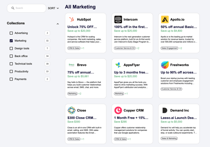 3. You can use the collections list on the left-hand side of the screen to sort offers by category