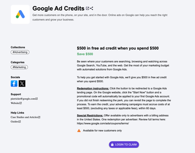 As an example, we've selected Google Ads—you will be given more information on the specifics of the offer as well as instructions for redemption.