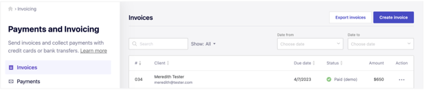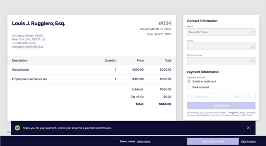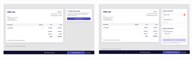 Previewing client's invoice payment experience with demo mode