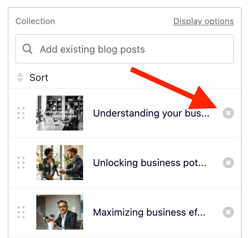 3. Scroll to the Collection area where all blog posts are listed. Click the X