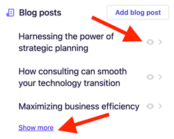 2. Scroll down to Blog posts to see all your posts.